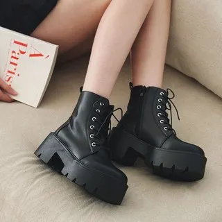데이프릴 여성 통굽 레이스업 지퍼 플랫폼 워커 부츠